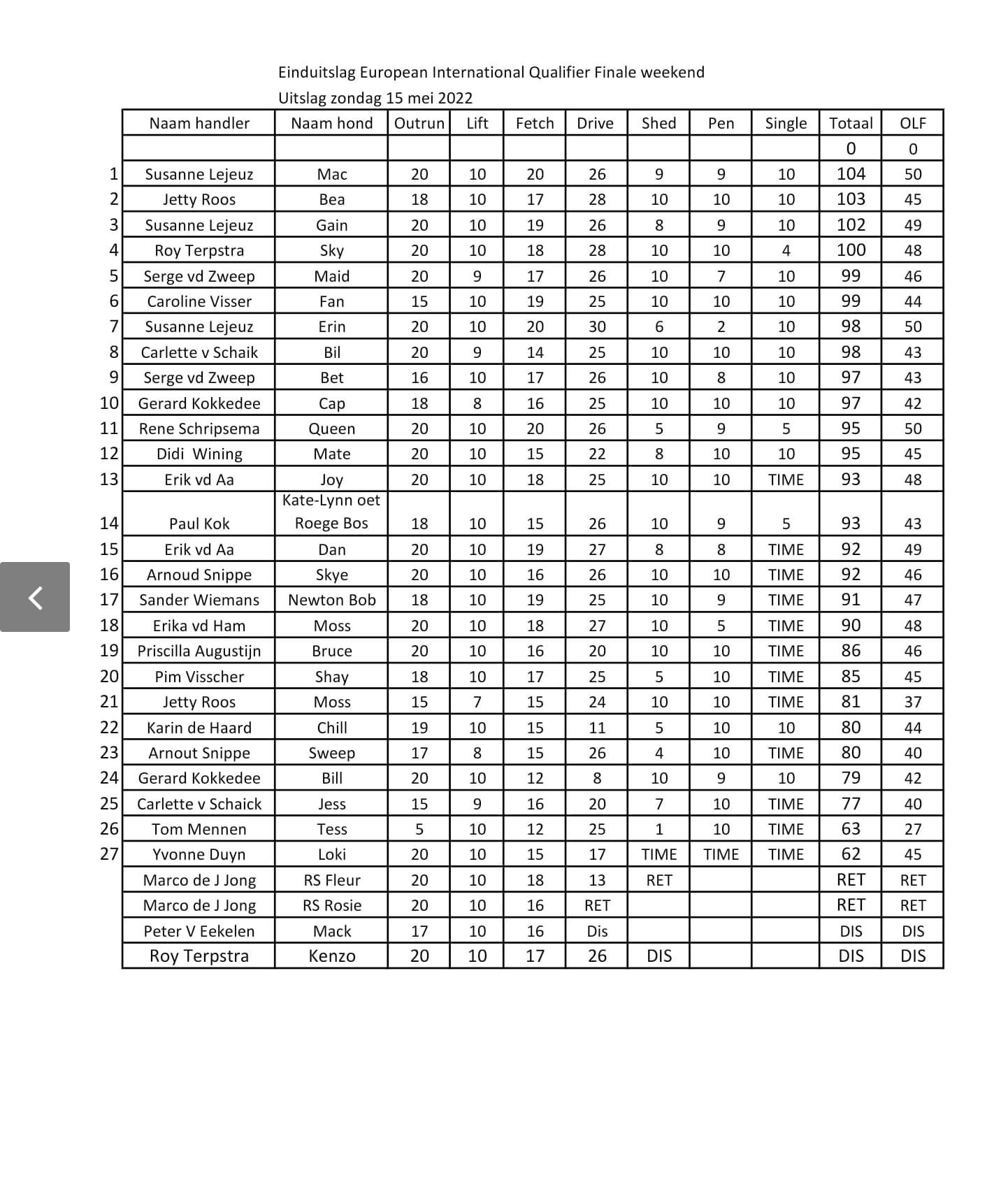 | Nederland | Assen | 04/06-11-2022 | Qualifier 3 | Dutch Sheep Dog Society | Uitslag |
